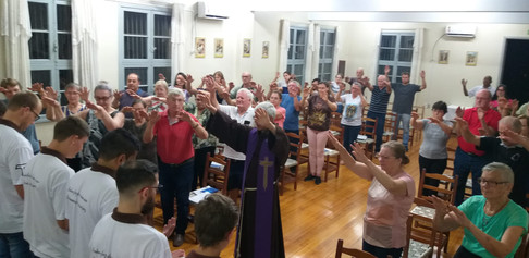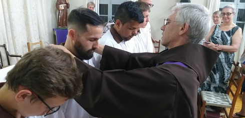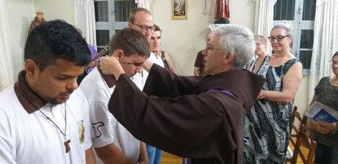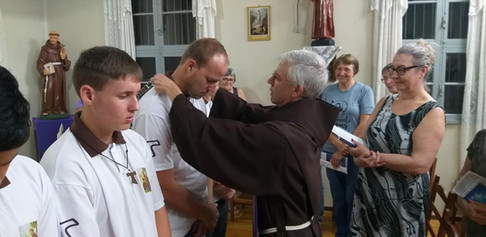 A missa foi presidida pelo Frei Marino Rhoden. Além dos freis que compõe a fraternidade do seminário também esteve presente o Frei Tiago Frey (animador vocacional da região sul do RS), alguns familiares dos aspirantes e pessoas da comunidade.