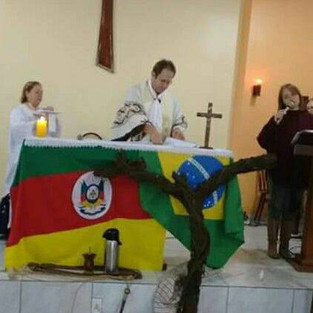 Tchê, quando me perguntam: por que rezo Missa Crioula? Respondo rapidamente e bem faceiro: na lida campeira sempre vivi, fui conhecendo nossa história desde guri. Mas não só isso, também fui iniciado e conduzido pela família nos trilhos da fé. Mais tarde, já nos tempos de rapaz, fui conhecer que existia um jeito de rezar a Santa Missa e honrar a Tradição: Tradição da Fé e Tradição Gaúcha, duas histórias de muito respeito, que muito andaram de mãos dadas. Bem verdade que, como todos, nosso povo imperfeito, deu algumas vaciladas, mas com honra no peito e fé no coração, de novo foi tomando jeito. Já durante a formação sagrada, ajudava na liturgia e animação de Missas Crioulas e depois de Ordenado comecei também presidir.